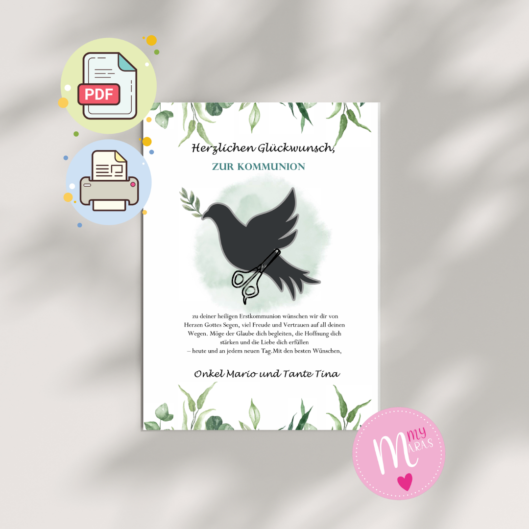 Das PDF ist beschreibbar, sodass du Namen, Datum oder einen persönlichen Gruß direkt am Computer, Tablet oder Smartphone eintragen kannst – kein handschriftliches Ausfüllen nötig! 💻✍️