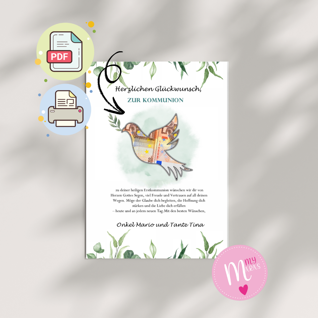 Verschenke Geld zur Erstkommunion auf ganz besondere Weise – mit diesem liebevoll gestalteten digitalen Deckblatt im PDF-Format 🤍