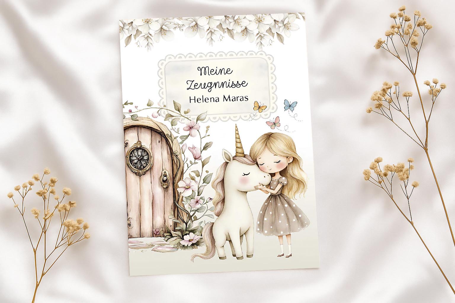 Digitale Vorlage für Zeugnismappen • A4 • Einhorn #25-002 (02)